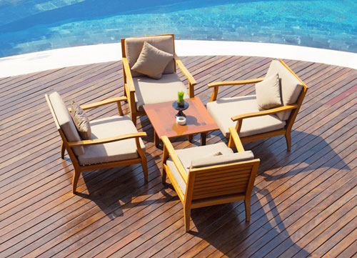 Exterior furniture finishes with same choices as interior finishes but enhanced for weatherability and durability.